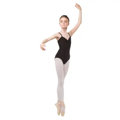 Классическая модель купальника чёрного цвета с тонкими бретелями, драпировка регулирует глубину выреза.Выкат спинки прямой, открытые лопатки, средний окат ножки.